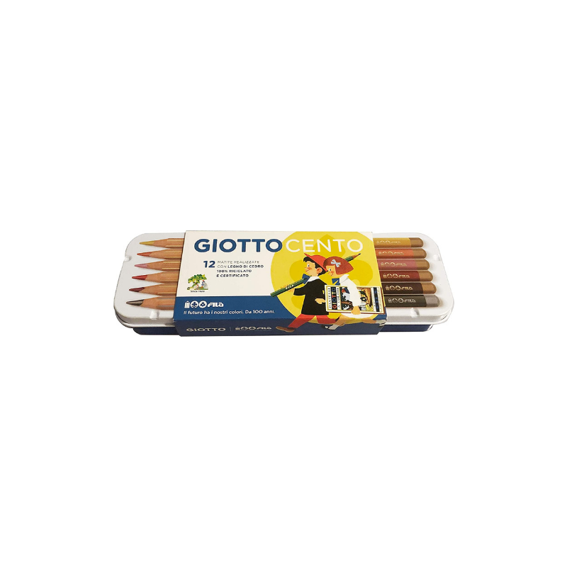 Un’ottima edizione anniversario racchiusa in una elegante confezione in metallo che vuole richiamare le prime confezioni storiche. Ogni astuccio contiene 10 pastelli Giotto Cento e 2 Lapis Cento oltre ad un’edizione 2020 del segnalibro FILA.